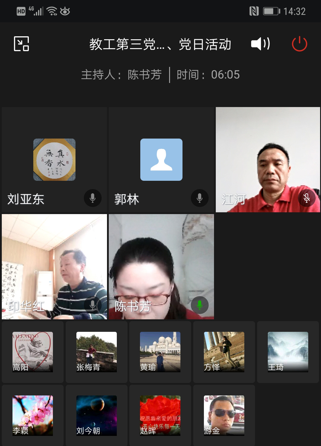 接着,支部书记总结了前一段时间支部的工作成果,并进行下一步工作安排。疫情防控期间,支部党员认真扎实搞好网络教学,积极参与学科专业建设,耐心指导学生参加各级各类学科竞赛等;支部党员在完成好日常工作外,积极在学习强国平台中学习关注党建和专业知识,学习氛围浓烈。在江河书记的带领下,支部教师党员陈书芳、游金积极参加学校的“战役先锋队”,坚守在抗议的第一线;此外,党员教师们还以各种方式抗击疫情,积极带头捐款捐物。高阳老师通过校内外平台多次主动为疫情捐款;刘亚东老师以拍代捐,将自己的书法作品拍卖所得捐助疫情防控,展现了党员教师们在战“疫”中守初心、担使命的先锋模范作用。