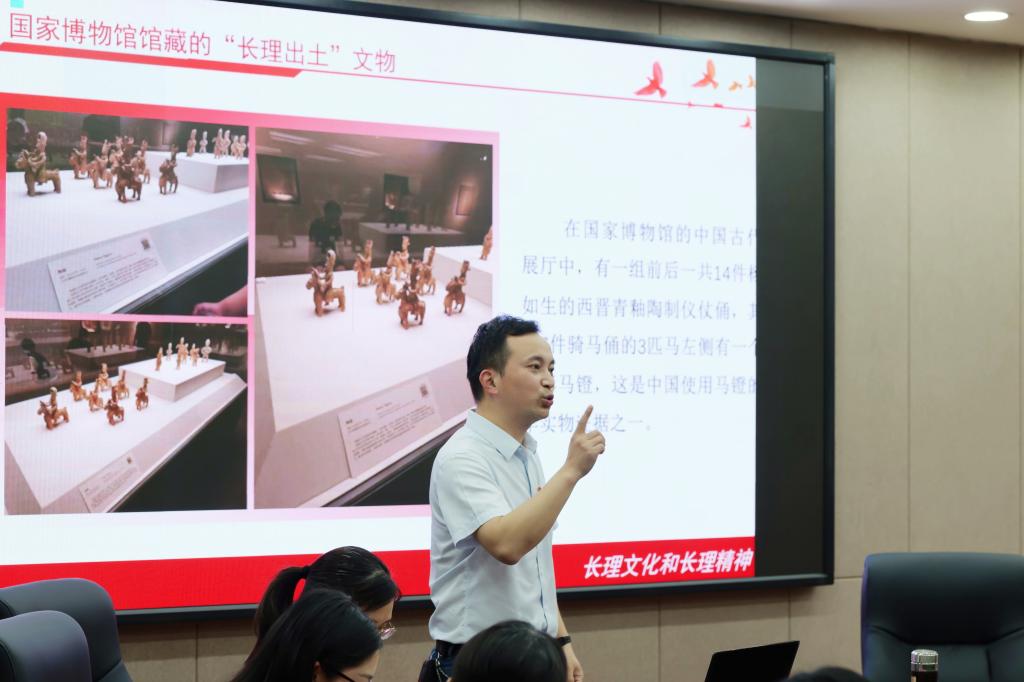 设计艺术学院党委书记李伟以《拾遗长理沃土中历史文物背后的故事》为题分别到第二党支部和第三党支部上了一堂微党课。李书记从金盆岭(永利集团88304官网老校区)出土的人类历史最早的一批马镫(西晋)谈到长理门口的中国第一条现代公路,从文化自信谈到道路自信,从“三高四新”谈到“长理担当”,深情地介绍了长理的发展历史和文化特色,希望党员赓续实干奋斗传统,在学思践悟中坚定理想信念,在奋发有为中践行初心使命。