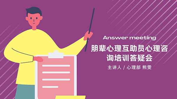 答疑会旨在能够切实帮助到各位朋辈互助员们找到解决问题的办法和思路,并且可以在之后的生活中调整好自己的状态,关注同学们的心理健康状态,平衡好学习和工作的关系,做到全力以赴努力拼搏,不辜负每段美好的时光。