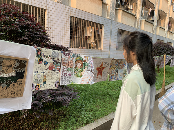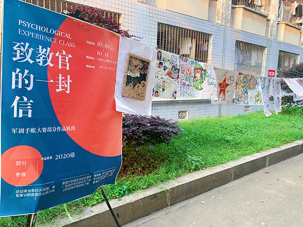 此次作品展为“致教官的藝封信”与“我的室,我的友”双主题,活动由学院团委学生会心理部举办,面向2020级全体新生征集作品百余幅,展出优秀作品23幅。本次军训手账大赛活动旨在引导新生发挥专业特色,通过手账的形式记录军训生活中难忘点滴与成长蜕变。倡导大家感恩军训以来教官的辛苦付出和谆谆教导,感恩大学室友的美好相遇和互帮互助。教诲如春风,恩情似海深。简单的形式、由衷的祝福表达不尽大家对教官的喜爱、感激和敬仰之情。画笔绘出的河同水密,增进了室友间的感情。阳光下的每一幅作品都闪耀着灵感和创意之光,真情实感浓情于一笔一划的文字和色彩中,为前来观赏的师生献上了一场视觉盛宴。在展出期间引得理工学子纷纷驻足参观,不时发出赞叹之声。