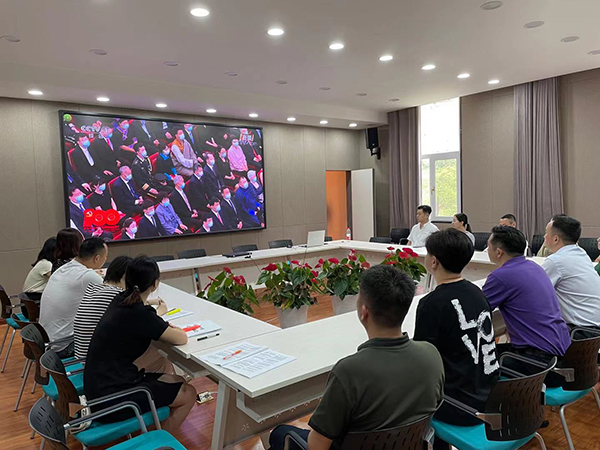 6月29日上午10时,庆祝中国共产党成立100周年“七一勋章”颁授仪式在人民大会堂隆重举行。中共中央总书记、国家主席、中央军委主席习近平为“七一勋章”获得者颁授勋章并发表重要讲话。设计艺术学院党政领导班子、党支部书记、行政人员及部分研究生代表在艺术楼C320集体收看了实况直播。