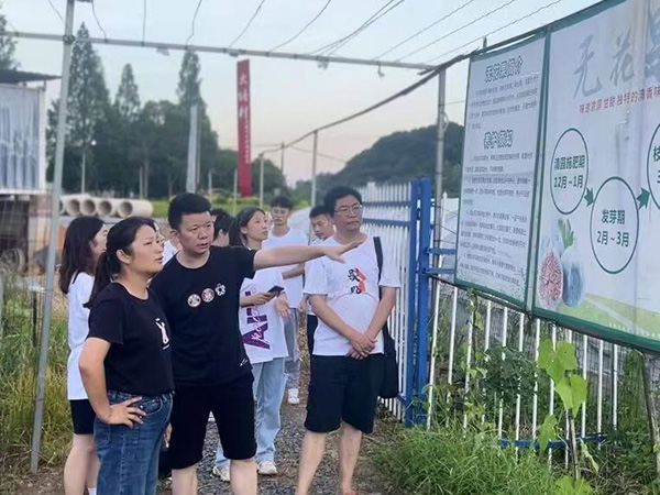 本次暑期“三下乡”实践活动中,本科生实践团成员在“瓜果总动员农场”,就品牌规划建设以及视觉形象打造、二十四节气儿童主题教育上开展项目实践活动。当天下午,实践团成员在带队老师严海岸的带领下,继续在白箬铺镇“瓜果总动员农场”进行暑期实践,深化其果园的改造及施工方案。