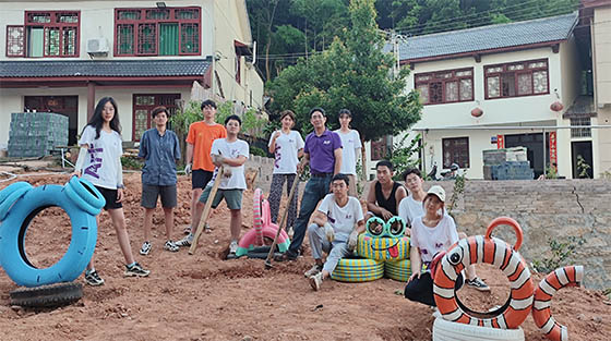 7月26日,设计艺术学院赴望城区白箬铺镇三下乡社会实践团在带队老师文卫民的带领下,在乡创中心的改造及施工。