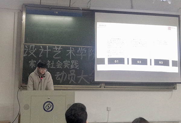 本次寒假实践活动动员会成功举办,使艺术学子对自身责任与使命有了更加深刻的认识,大大提高了艺术学子对寒假实践活动的兴趣。这不仅增加了设计艺术学院的凝聚力更展现了艺术学子昂扬向上的精神面貌。