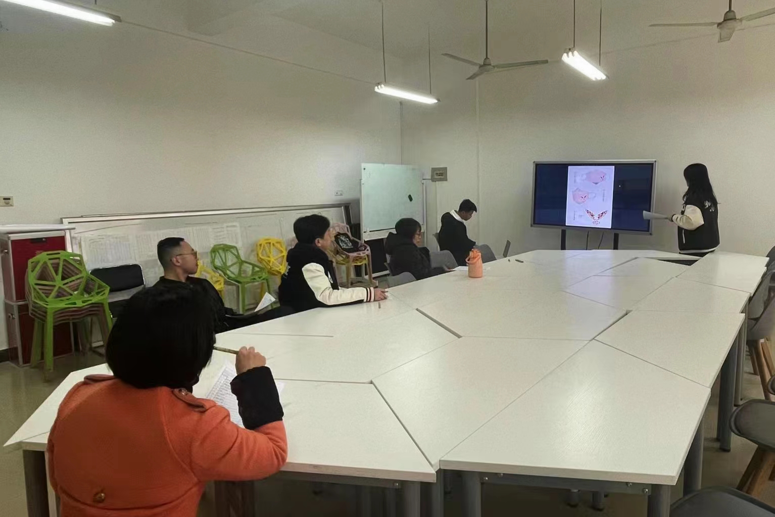 比赛前期,设计艺术学院创新平台广泛宣传,艺术学子踊跃参加,优秀作品层出不穷。奋进新征程,献礼二十大、瑞兔迎春、美丽家乡、爱校荣校四个赛道经过线上的激烈角逐后,我院“藝”聚力量,“罩”顾你我——口罩设计大赛顺利进入到最后的线下评选环节。在线下评选中,首先由学生干部主持介绍各个作品,并展示口罩设计样品图,接着由评委老师们进行现场打分。秉持着公正严谨的态度从多维度综合打分,严格把控设计评选标准,充分挖掘口罩设计作品的特质和个性,评选出的作品兼顾审美价值与实用价值。