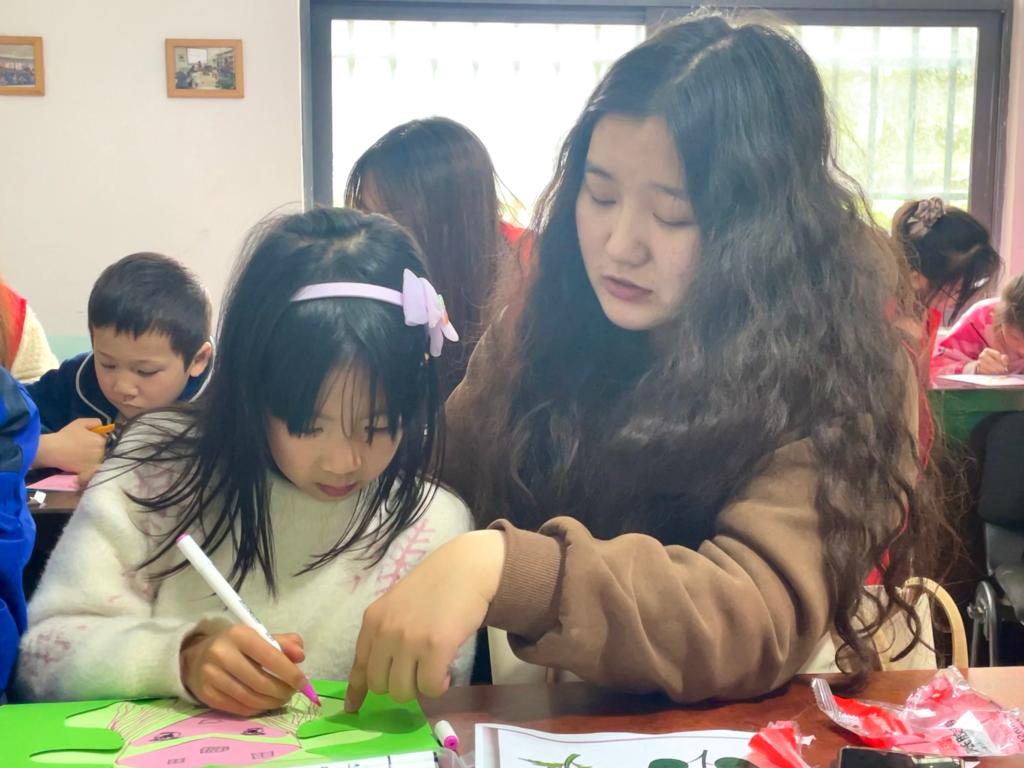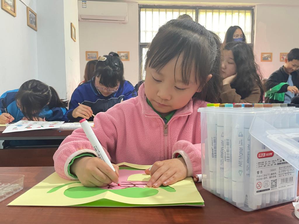 活动现场,志愿者向小朋友们介绍闰二月、闰年的相关知识,“闰二月的出现十分罕见,出现频率仅次于闰三月。”科普完毕后继续宣讲二十四节气,积极引导小朋友们回答问题,“春雨惊春清谷天……”清脆的童声回荡在课堂内,营造了一个热烈讨论的学习氛围。随后,志愿者带领小朋友们进行纸雕作品制作,小朋友们将天真可爱的童心凝于手中的纸雕,用一张张卡纸拼贴出色彩纷呈的艺术创造,用一只只画笔描绘出五彩斑斓的设计作品。当一幅幅作品呈现在小朋友们的眼前,不仅培养了孩子们对传统文化的兴趣,还训练了小朋友们的动手能力,培育了小朋友们表现美、欣赏美的能力。