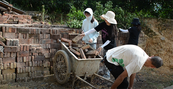 为了秉承低成本、易推广的原则,团队成员将村民家中废弃的砖头、木材变“废”为“宝”,投入到庭院建设。此方法既节省了庭院建设成本,也与环保理念相呼应。