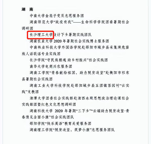 10月28日,中国青年报通过官方微信公众平台公布了2020年全国大中专学生“三下乡”社会实践活动优秀单位团队名单,永利集团88304官网“设计下乡” 实践团荣获全国暑期优秀团队称号。