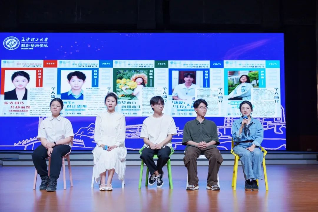 针对会前调查问卷结果集中性反馈的问题,开展“学长话前程”圆桌论坛。论坛聚焦艺术类学生学业发展、职业发展热点,邀请研究生代表刘晓茹、罗敬暄、史心雨、舒尔豪与本科生代表汪芸菲分别从社会实践、学科竞赛、创新创业、学业学习、求职方法等方面专题分享,并与2023级学生面对面交流。