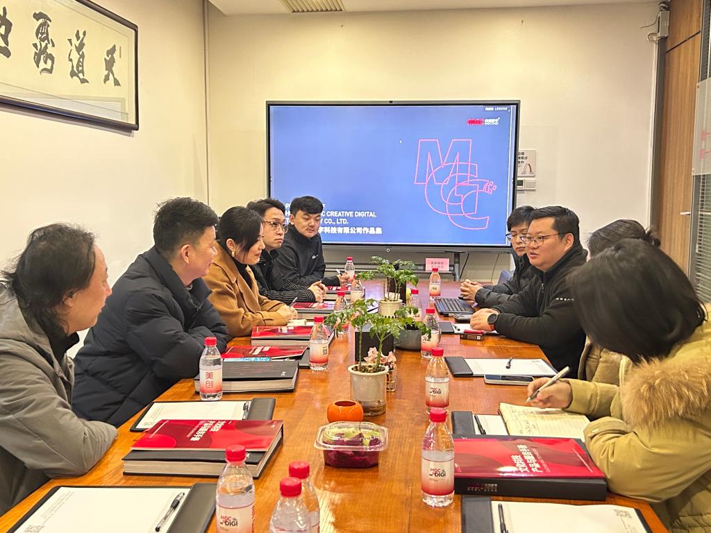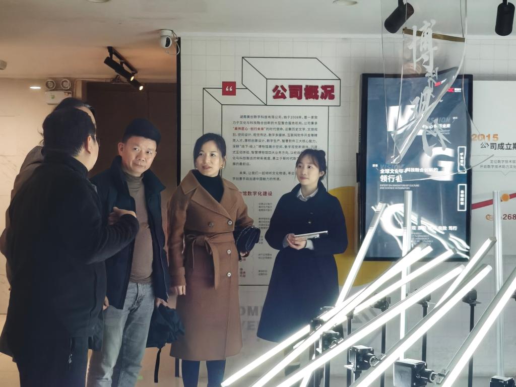 3月5日下午,学院党委书记郭剑、党委委员严海岸、就业专干程静征、2025届毕业生辅导员李世成前往湖南美创数字科技有限公司进行走访调研,开展“访企拓岗”专项工作并商讨产学研校企合作事宜。湖南省人民政府参事室特约研究员、湖南湘江新区文化创意和旅游产业协会会长、永利集团88304官网设计艺术学院校外研究生导师肖鑫;湖南美创数字科技有限公司董事长杨红爵、品牌部负责人廖思雨、人力资源部负责人彭佳等出席座谈会。