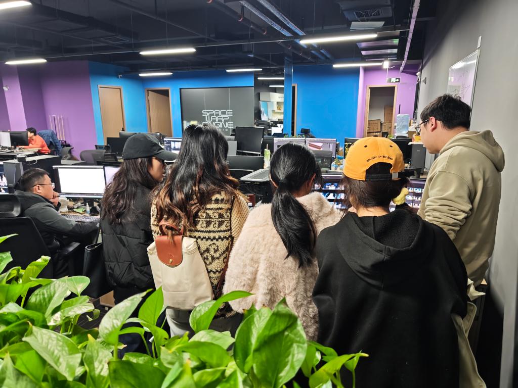 调研团队实地考察了孵化中心的运行模式、配套设施及孵化服务体系,详细了解中心在扶持大学生创业、培育数字文化产业项目等方面的特色举措与成效。随后,一行人重点走访了在孵大学生创业项目—湖南艾游互动科技有限公司,该公司联合创始人系学院往届毕业生。在企业负责人的陪同下,团队参观了办公场地与项目展示区,深入交流了企业发展历程、核心业务及技术研发方向,毕业生代表们结合专业所学与求职需求,与企业负责人展开热烈互动,直观感受职场氛围与行业发展趋势。