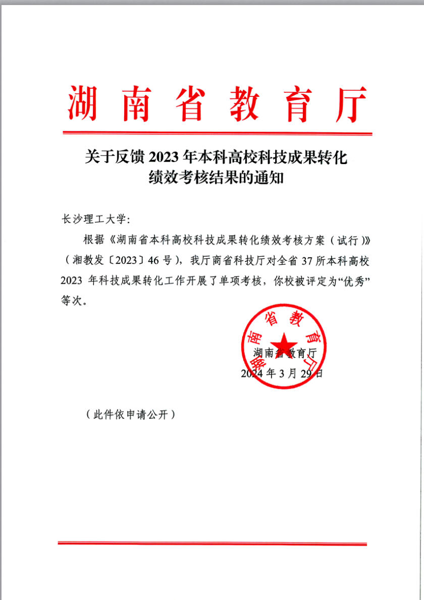 喜报--永利官网在2023年高校科技成果转化绩效考核… 3月29日,湖南省教育厅下发《关于反馈2023年本科高校科技成果转化绩效考核结果的通知》,永利官网被评定为“优秀”等次。为深入贯彻落实习…