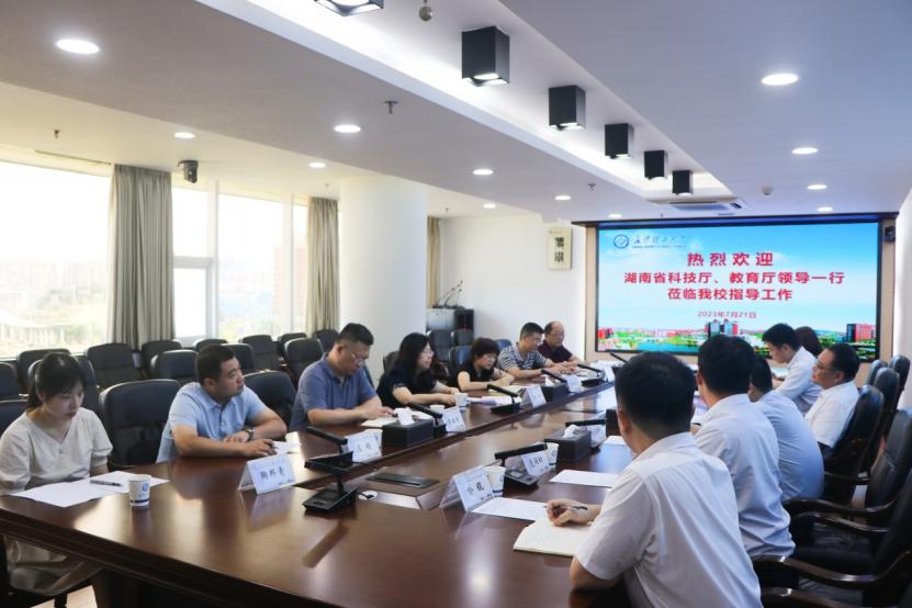 7月21日上午,湖南省科技厅副厅长朱皖,教育厅科技处处长王红冰,科技厅成果转化与区域创新处处长李征宇,科技厅成果转化与区域创新处副处长李小兵,教育厅科技处一级主任科员左超,省技术产权交易中心研究员周利平等一行7人来永利官网调研座谈。党委委员、副校长刘朝晖出席调研座谈会并讲话。科技成果转移转化及相关学院、科研团队负责人参加座谈。