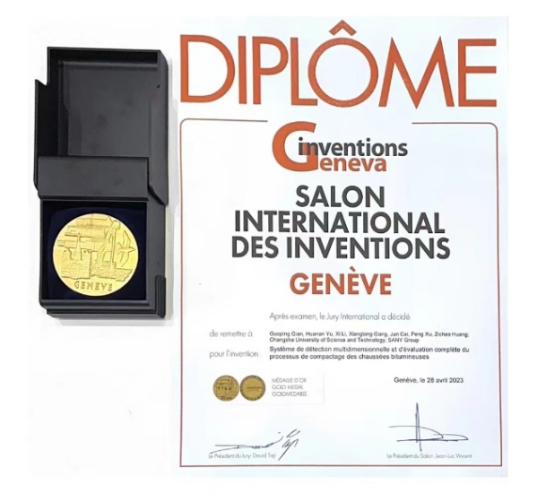 2023年4月26日–30日,第48届日内瓦国际发明展(International Exhibition of Inventions of Geneva)在瑞士日内瓦举行。永利集团88304官网与三一重工有限公司联合攻关,钱国平教授、于华南教授、李希副教授等完成的专利技术“沥青铺面压实状态多维评价系统”斩获展会金奖,成果受到中国驻瑞士大使王世廷、日内瓦经济部长法比安娜·费舍尔等海内外人士高度评价。