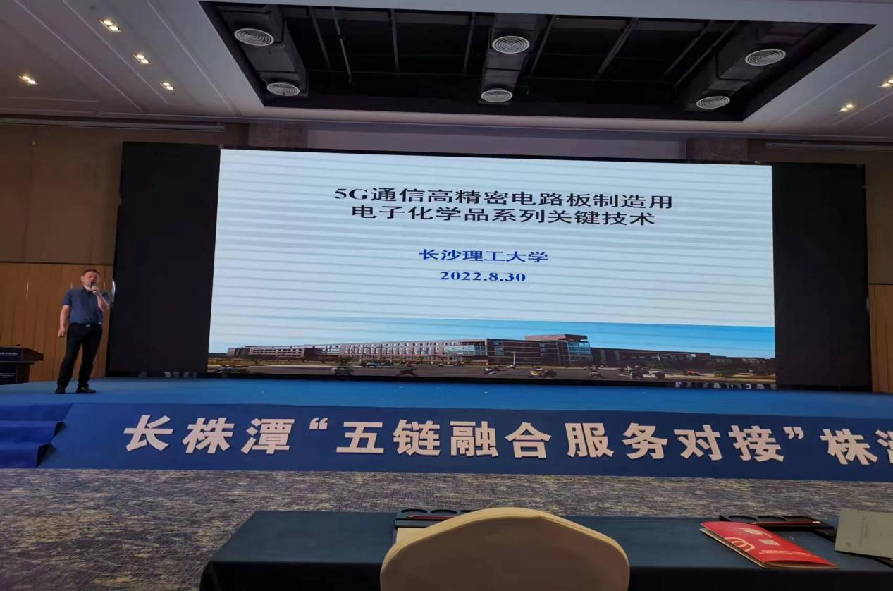 8月30日上午,永利官网科技成果转移转化中心(知识产权中心)副主任刘亚辉陪同化学化工学院吴道新、肖忠良两位教授到株洲市中国动力谷学术交流中心参加长株潭三市“创新链、产业链、资金链、人才链、政策链五链融合”科技成果对接活动。在对接活动会上,吴道新教授以“5G通信高精密电路板制造用电子化学品系列关键技术”为题作项目路演,该项技术得到了相关企业和投资方的广泛关注,路演结束后,有企业和投资方主动找到吴教授了解该技术的具体情况和留下联系方式。