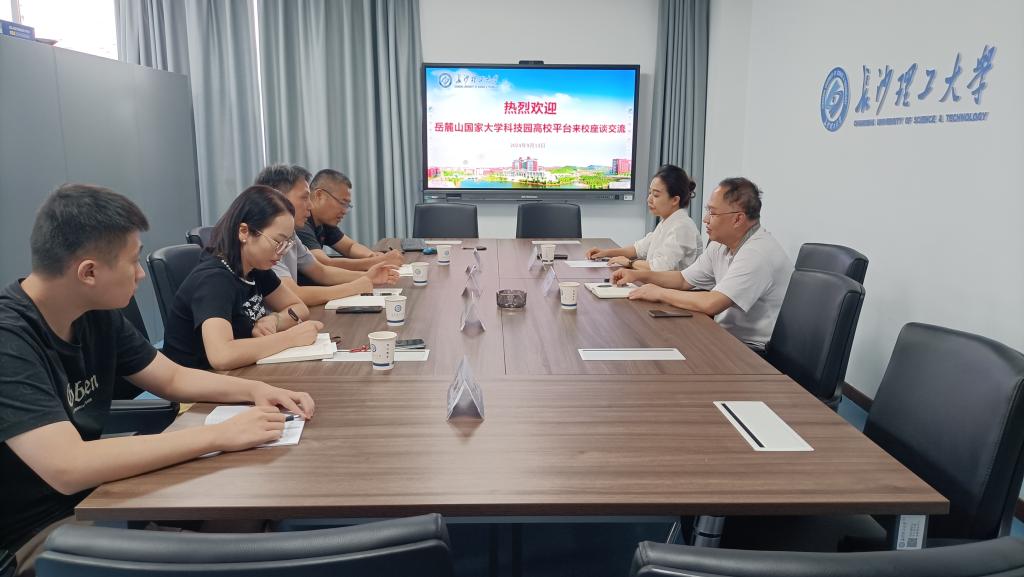 为推动政产学研用深度融合,促进科技创新和人才培养,服务地方经济发展,9月14日,岳麓山国家大学科技园总经理胡思思一行来永利官网就科技成果转化,大学生创新创业基地建设等进行座谈交流。此次会议对科技成果转化、园区科研合作、人才培养、科技成果转化要素等工作进行了深入交流,共同探索高校与科技园区企业合作路径。投资公司(成果转化中心)党总支委员、副主任肖志高,综合办公室、成果转化部负责人参加会议。