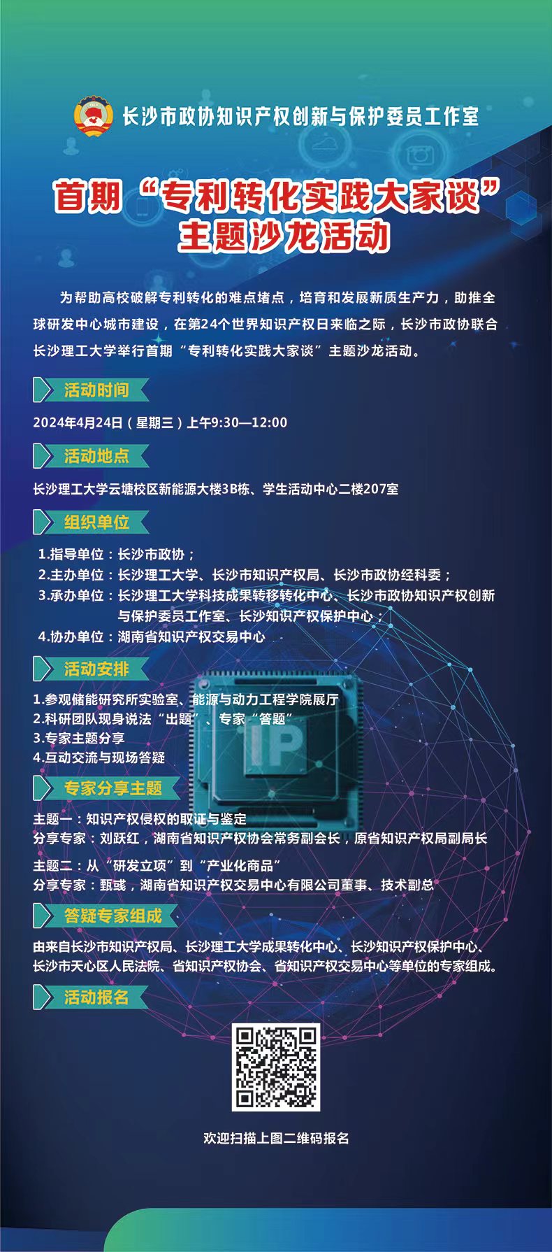 3.承办单位:永利集团88304官网科技成果转移转化中心、长沙市政协知识产权创新与保护委员工作室、长沙知识产权保护中心;