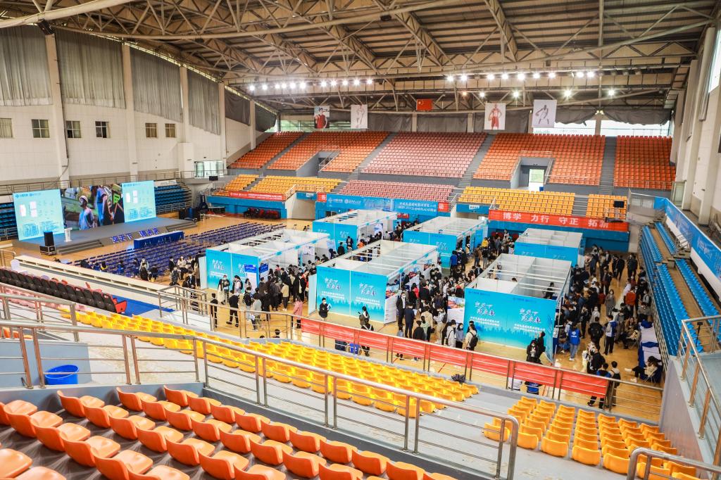 最后,中交集团锐力量宣传团用别开生面的宣讲方式为专场招聘会拉开了帷幕。招聘现场人头攒动,咨询与应聘的学生都在每个展位前排起了长队,学生们手持多份简历,寻找符合意向的单位。
