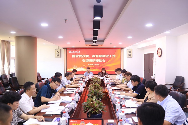 7月12日上午,国家发改委就业司副司长、一级巡视员郭启民,教育部高校学生司副司长吴爱华,国家发改委就业司就业处干部安修伯一行来校专题调研就业工作,省发展改革委党组成员、副主任杜中华,教育厅二级巡视员李纪武,省发改委就业收入分配和服务业处处长周建龙,教育厅学生处(毕业生就业办公室)处长曹敏,省大中专就业指导中心主任钟秋明,省发改委就业收入分配和服务业处谢海庆陪同调研,党委书记付宏渊、副校长钱国平、相关部门负责人、辅导员代表参加调研座谈。