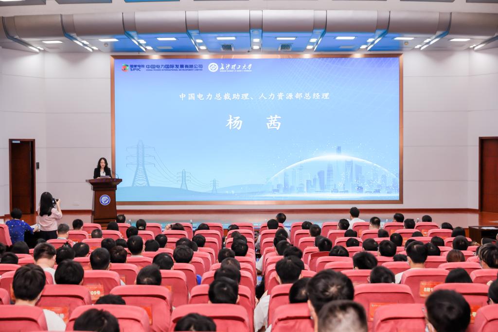杨茜代表中国电力致辞。她对学校长期以来给予中国电力的大力支持表示感谢。她向长理学子发出诚挚邀请,期待更多的长沙理学子加入中国电力,共同致力于中国电力在2035年成为世界一流的绿色低碳能源供应商,与长理杰出校友共同打造中国电力的辉煌未来。王冬容从企业概况、常规能源项目、清洁能源主赛道、绿色能源新赛道、人才培养五个方面进行宣讲。