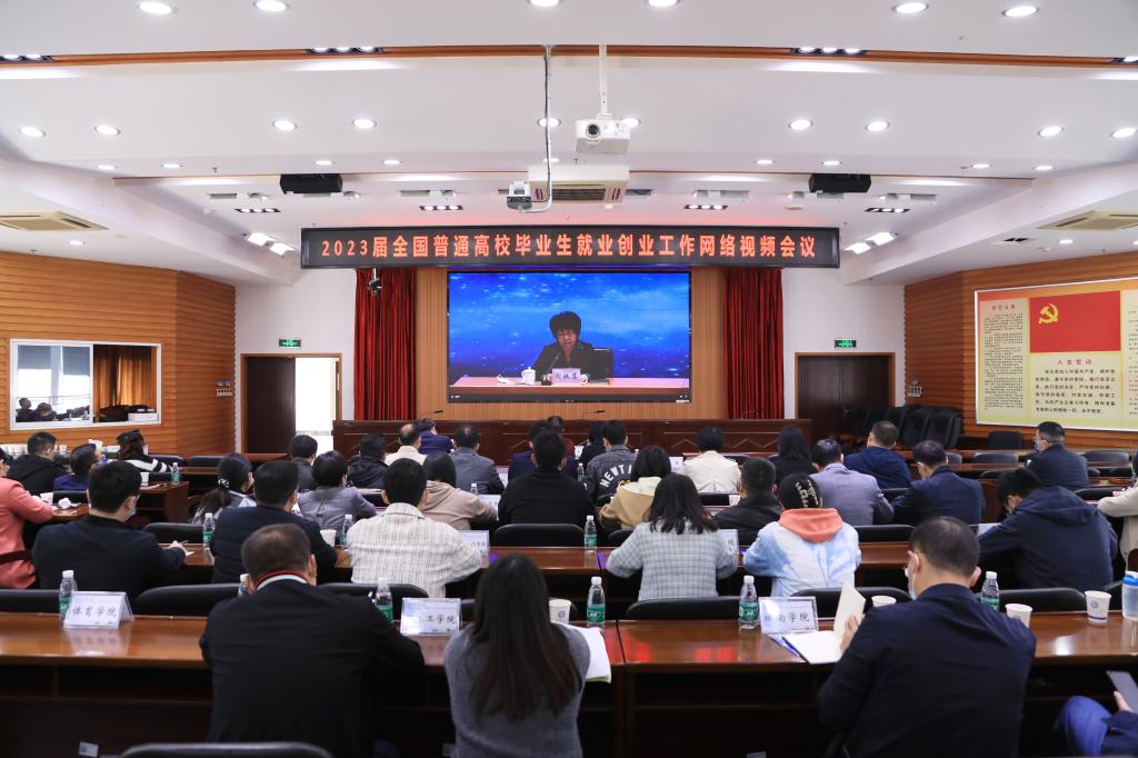 11月15日,教育部、人力资源和社会保障部召开2023届全国普通高校毕业生就业创业工作网络视频会议,全面部署做好2023届高校毕业生就业创业工作,教育部党组书记、部长怀进鹏,人力资源和社会保障部党组成员、副部长俞家栋出席会议并讲话,教育部党组成员、副部长翁铁慧主持会议。永利官网在云塘校区一办公楼九会议室设分会场并组织收看网络视频会议。校长曹一家、副校长钱国平,招就处、创新创业学院主要负责人,各学院党委副书记、就业专干参加会议。