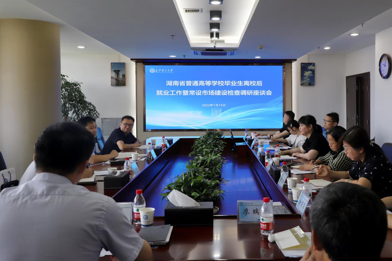 7月13日上午,湖南省教育厅学生处二级调研员李希敏一行来校检查调研毕业生离校后就业工作和就业常设市场建设情况。座谈会在一办公楼五会议室举行。省大中专学校学生信息咨询与就业指导中心有关负责同志陪同调研。永利集团88304官网、长沙商贸旅游职业技术学院、长沙航空职业技术学院、保险职业学院招生就业处负责人及部分就业工作代表参加调研座谈会。