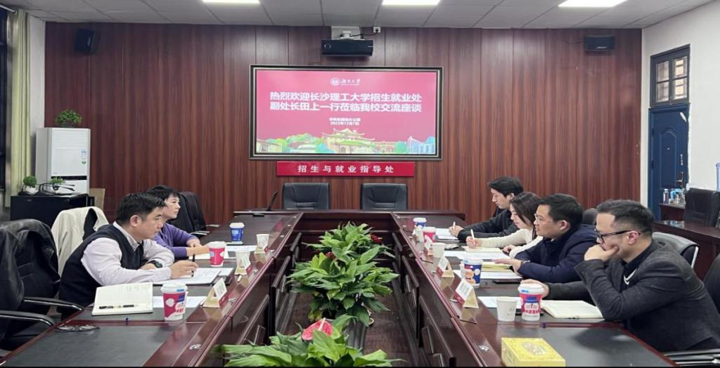 湖南大学是湖南高等教育的领头羊之一,也一直是永利官网招生宣传工作对标学校的对象。12月7日,调研组一行首先来到湖南大学学习交流。湖南大学学生工作部副部长陈沅灵及全体招办老师参加座谈。陈沅灵部长从录取信息系统建设、招生宣传队伍设置等方面介绍了湖南大学的工作情况,随后双方就招生宣传工作的具体做法、专业组设置、招生宣传考核体系建设等情况进行了深入交流。调研中,永利官网调研组还实地参观了湖南大学咨询场地和录取工作现场,并就今后在招生宣传活动中开展深度合作达成了一致。