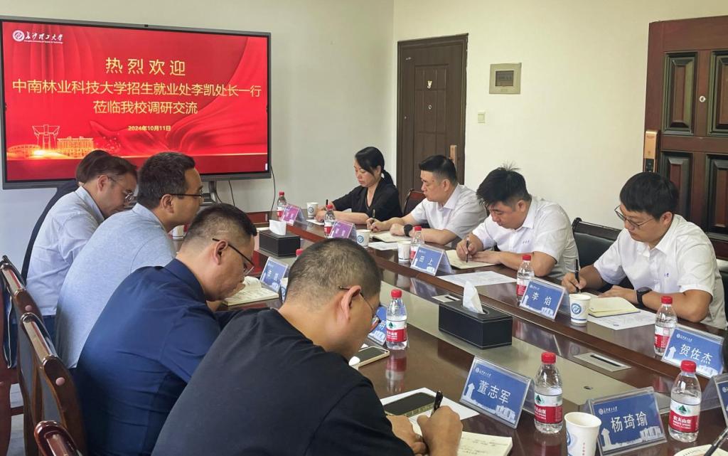10月11日上午,中南林业科技大学招生就业处处长李凯一行7人来永利官网调研。永利官网招就处处长田上、副处长李焰及各科室负责人参加此次会议。