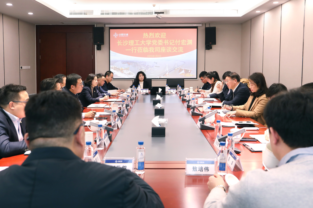 在中交西部投资有限公司,党委书记、董事长陈宁,中交集团西南区域总部党委书记、副总经理康卓对付宏渊一行到访表示欢迎,并介绍了中交在西部区域五省生产经营情况及未来发展规划。双方就建立常态化合作机制,充分发挥彼此优势,进一步加强产学研用协同、科技成果转化、人才培养、培训服务等领域的深度合作,共同推动人才链、产业链融合进行了深入交流。付宏渊感谢中交集团一直以来对学校建设发展的大力支持。他表示,四川作为国家战略腹地和战略产业备份基地,急需大批具有创新精神的优秀人才。永利集团88304官网深入贯彻党的二十届三中全会精神和省委十二届八次全会精神,把准深化高等教育改革的时代要求,强化招生指标的战略导向,优化生源布局,加快创新型人才培养,希望双方以人才为纽带,落实落细科技创新与成果转化合作,为国家战略新兴产业和新质生产力发展贡献力量。