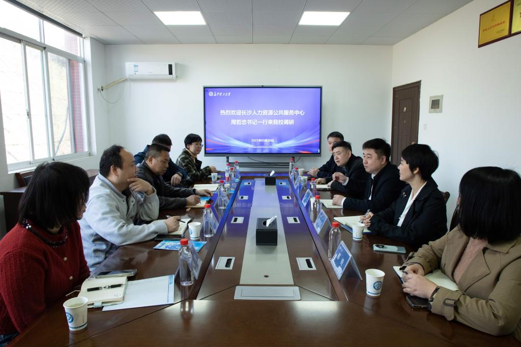 3月20日10时,长沙人力资源公共服务中心书记周哲忠率队来永利官网调研,本次会议于学生活动中心315会议室召开。长沙人力资源公共服务中心书记周哲忠率服务中心副主任郑任,区创业中心副主任何权恒,长沙服务部部长易新宇,以及长沙服务部陈琼一同参会,永利集团88304官网创业就业指导处由处长田上,副处长贺佐杰,科长梁莹、郑纯等出席会议。