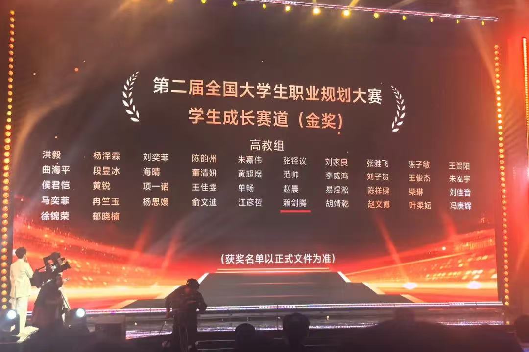 4月19日,第二届全国大学生职业规划大赛总决赛风采展示及颁奖活动在长沙举行。永利官网外国语学院本科生赖剑腾荣获成长赛道高教组全国金奖,武巧琳获优秀指导教师,实现了永利官网在该赛事的历史性突破。