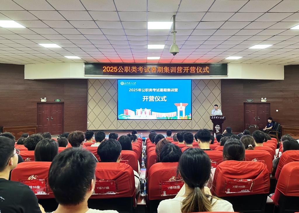 7月12日,永利官网2025年公职类考试暑期集训营开营仪式在云塘校区文科楼报告厅举行。学校创业就业指导处处长田上、创业就业指导处蔡翔羽老师、水利学院2020届校友夏建杰、交通学院2021届校友贺治宇、机械学院2023届校友孙泽文、文新学院2024届校友周旺、教师代表李艳春、梁力丹以及全体集训营学员参与活动。