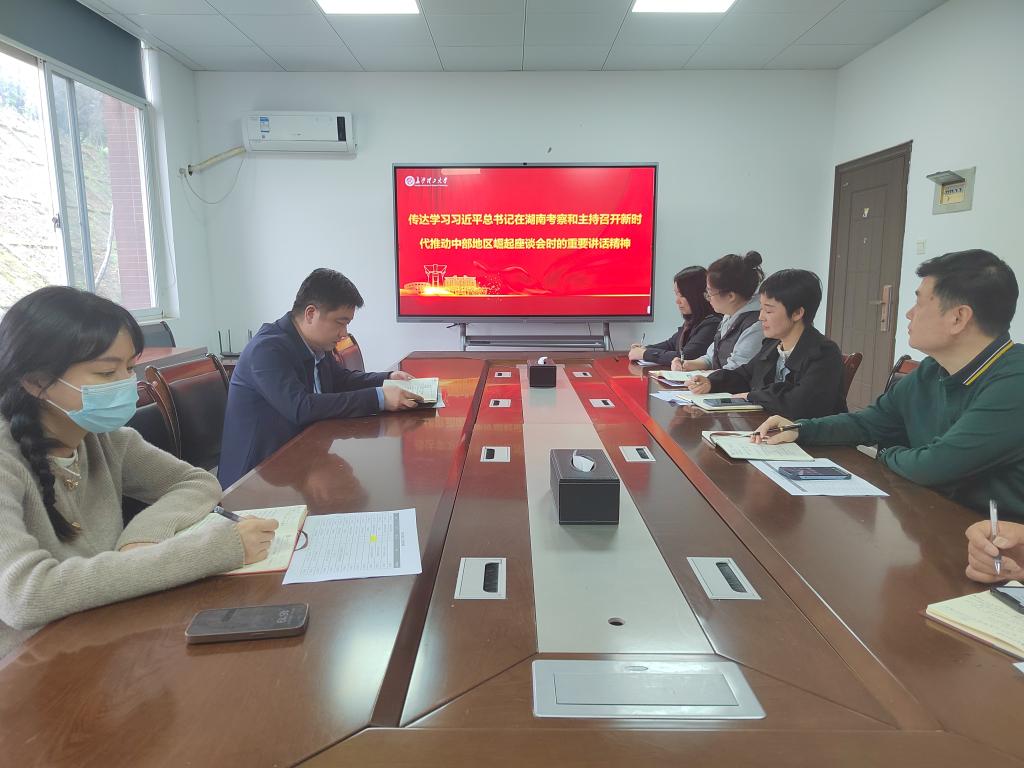 4月7日下午,招生就业党支部在学生活动中心315会议室开展集中理论学习,深入学习习近平总书记在湖南考察和主持召开新时代推动中部地区崛起座谈会时的重要讲话精神,安排部署贯彻落实工作。支部全体党员参加了会议,会议由招生就业党支部书记田上主持。
